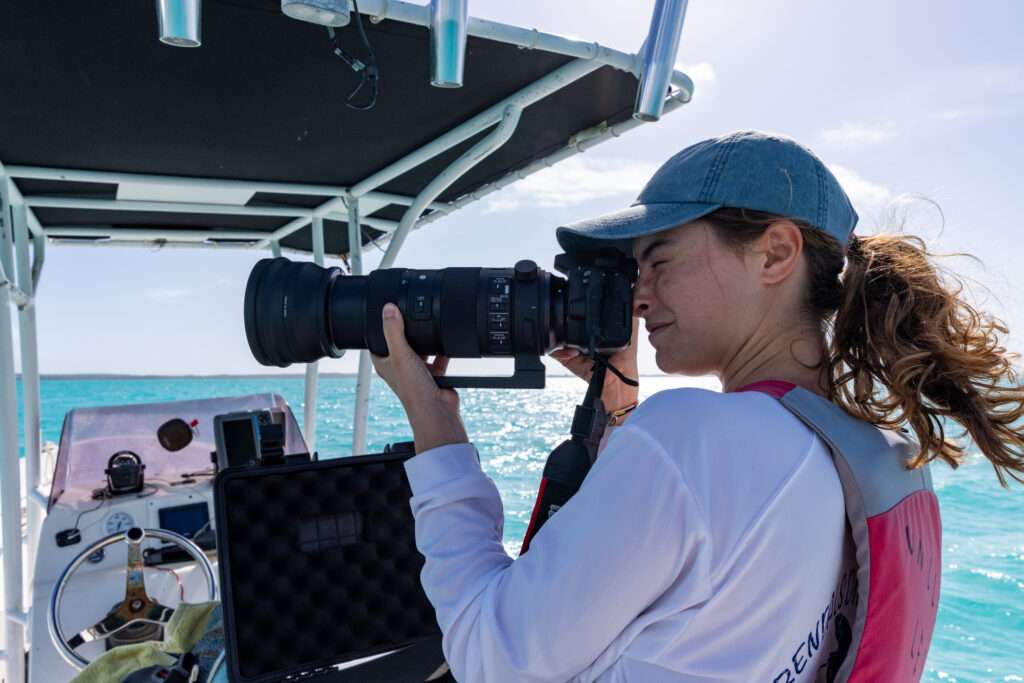There are a few limitations of photo-identification as a method. First, we are limited to windows of time where we’re able to physically observe animals, which rules out any period of time where it’s dark or the weather is hazardous for a vessel to be out on the water. Additionally, the process of going through photos to match them to a catalogue of previously sighted animals can also be quite time-consuming. Bottlenose dolphins can exist at quite high densities in coastal areas, typically around 0.5 individuals per square kilometre (the shallow banks of the Bight of Eleuthera cover approximately 2,500 square kilometres, potentially supporting 1,250 dolphins at this density).