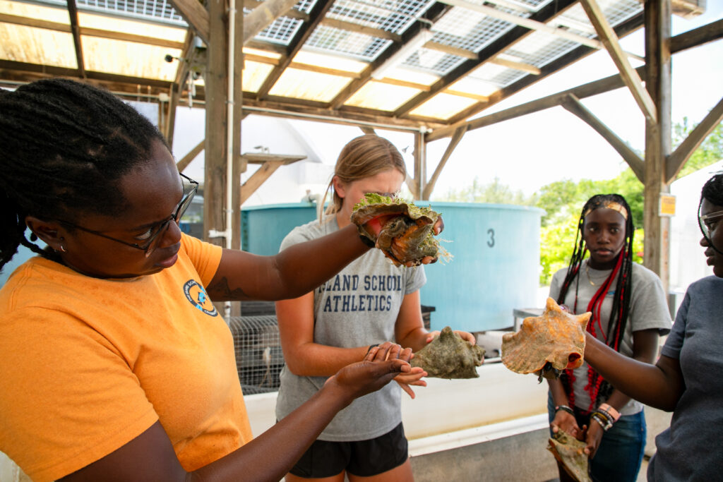 After spending six-weeks working at CEI, they’ve had the opportunity to not only handle a live conch for the first time, but to construct and support conch aquaculture. They’ve identified veligers (conch larvae) under microscopes, helped build sanctuary pens, and got to know this species from egg to adult. From spotting live adults off boats in a sustainable systems class to watching newly-laid egg masses release veligers into the water, they’ve followed the conch lifecycle from start to finish. And, in doing so, they have had the chance to connect more closely with their community, culture, and appreciation for conch!