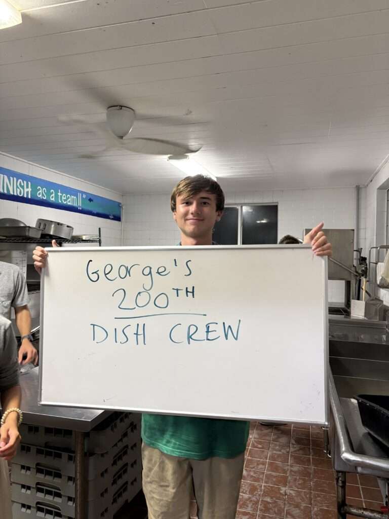 “Commitment is being so dedicated to something that you can’t pull away from it as much as you may want to.” George shared in his DOL. There is no doubt that he demonstrated this in the dish pit. By his second-to-last night on campus, George completed his 200 Dish Crews, cementing his legacy not only in the Dish Pit but in Island School history.