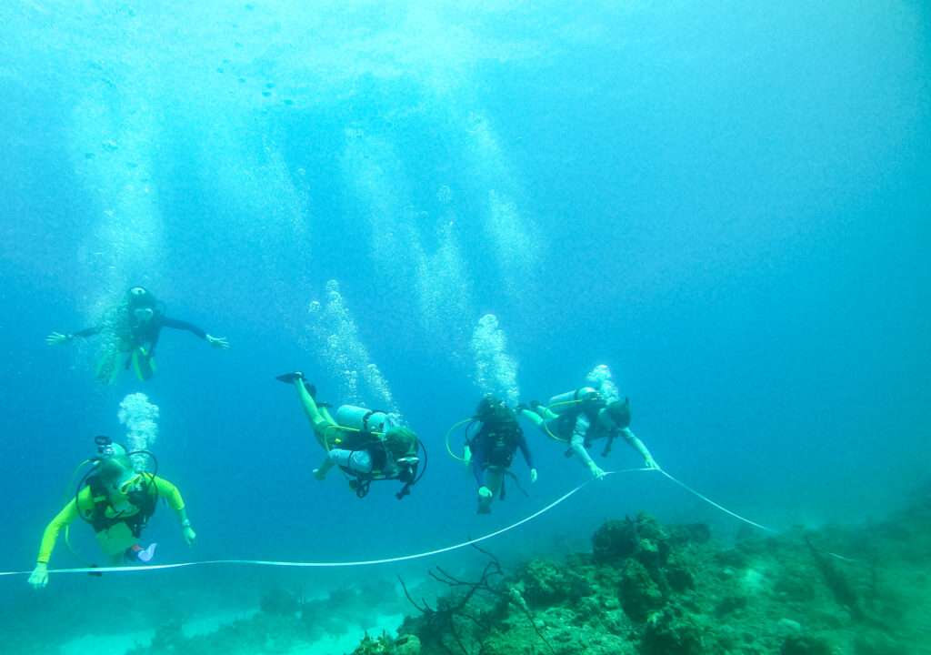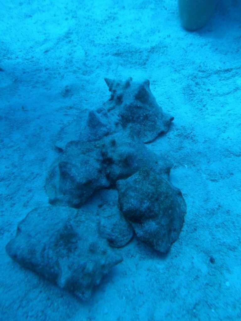 We also conducted basic underwater surveys of areas to assess queen conch populations. We perform these by scuba diving down to a select area, and establishing a 10-meter radius transect to locate conch. We then record certain details about each conch, such as sexual maturity and size. Then repeat this process at multiple points within each dive site. The goal from collecting this data is to start to see trends in conch size and population density from one dive site to another. With this evidence, we hope to provide recommendations to improve conservation efforts and tourism opportunities for these two vital species.