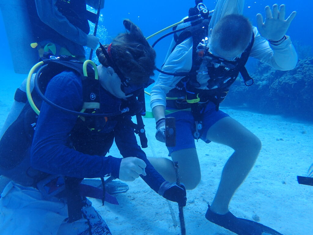 The students measure the substrates by taking pictures of the fragments next to a ruler (Figure 4), so that they can put those pictures into a computer program where they can compare the growth to scale. In addition to their diving work, the group also dedicates time to reviewing past peer-reviewed articles. They actively participate in discussions about the small changes they can make in their community to significantly impact the coral ecosystem.