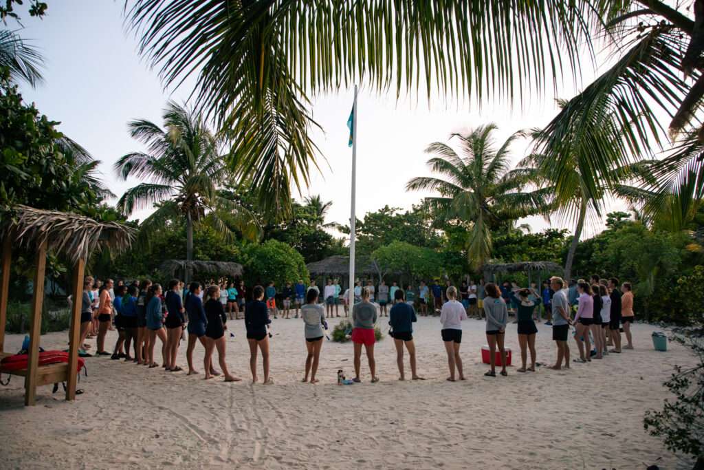 Students and faculty gathered bright and early around the flagpole to sing the Bahamian national anthem before heading down to the beach. Students learned to let go and fully embrace their new environment in the best way possible—by rubbing sand on their face and embracing the fun moment with each other.