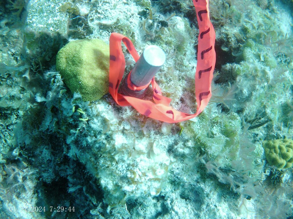 Figure 8 and figure 9 show tagged coral juveniles at the dive site Tunnel Rock. Picture taken by Scout Olney.
